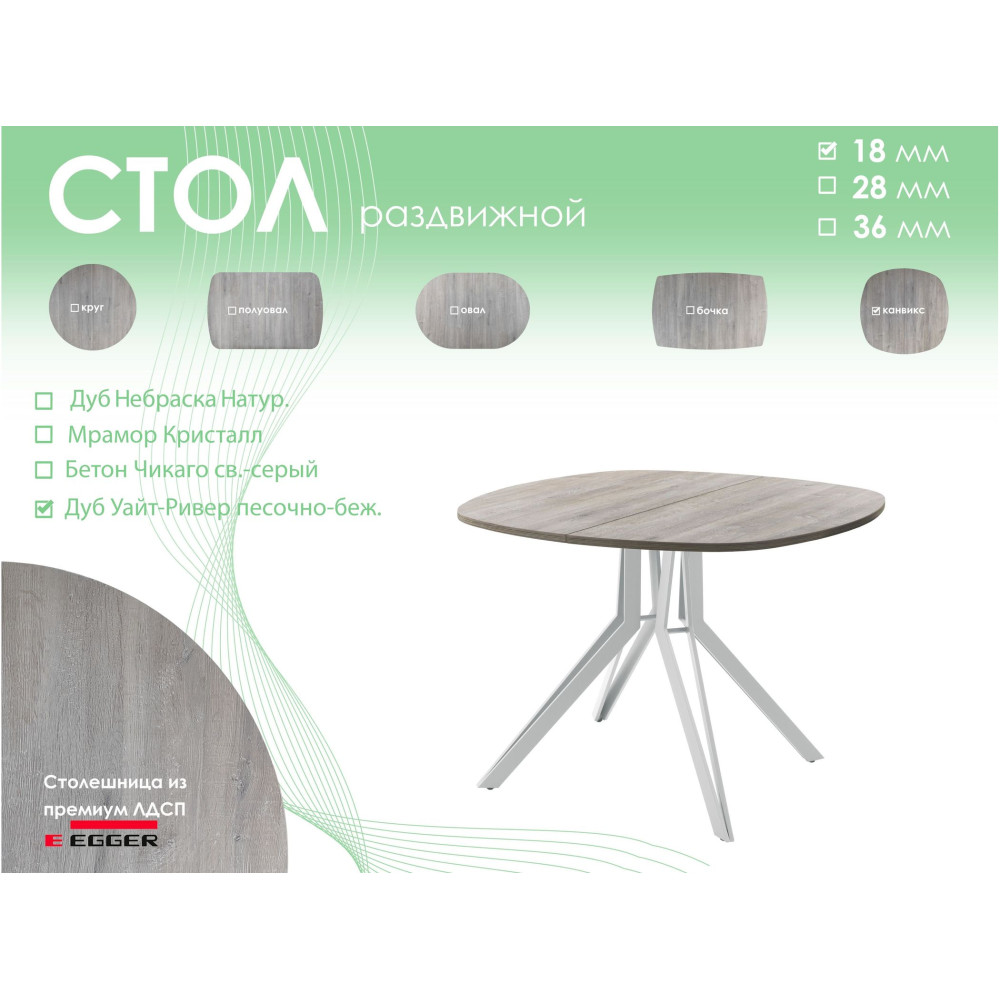 Тип столаобеденный стол | Форма поставкив разобранном виде | Форма столешницыканвикс |