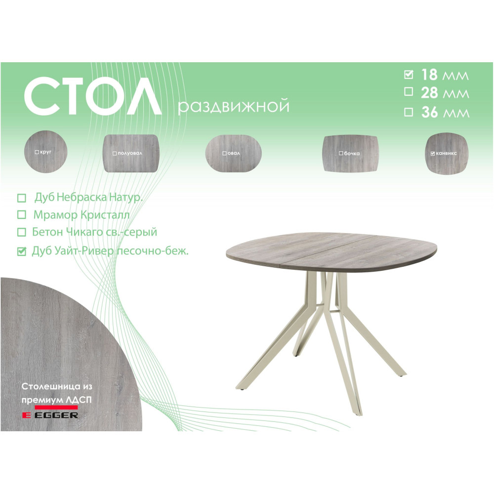 Тип столаобеденный стол | Форма поставкив разобранном виде | Форма столешницыканвикс |