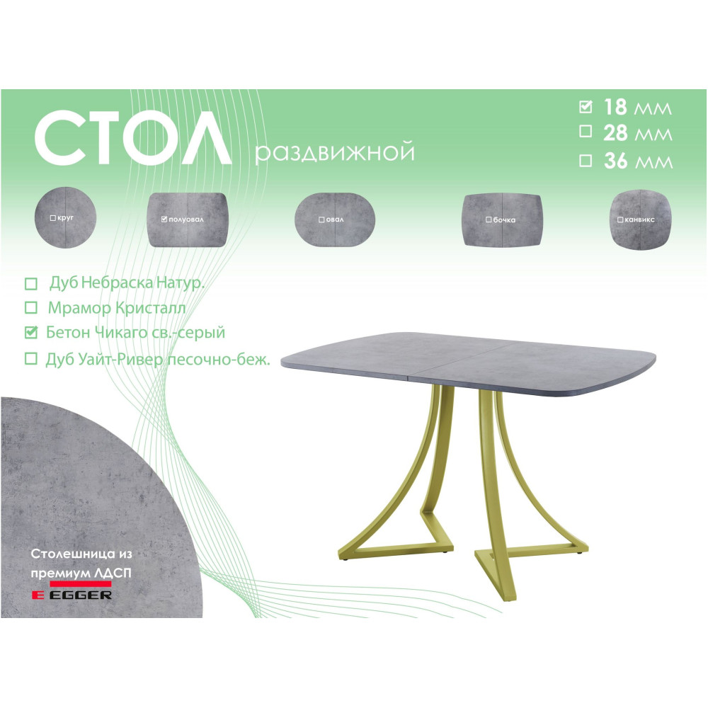 Тип столаобеденный стол | Форма поставкив разобранном виде | Форма столешницыполуовал |