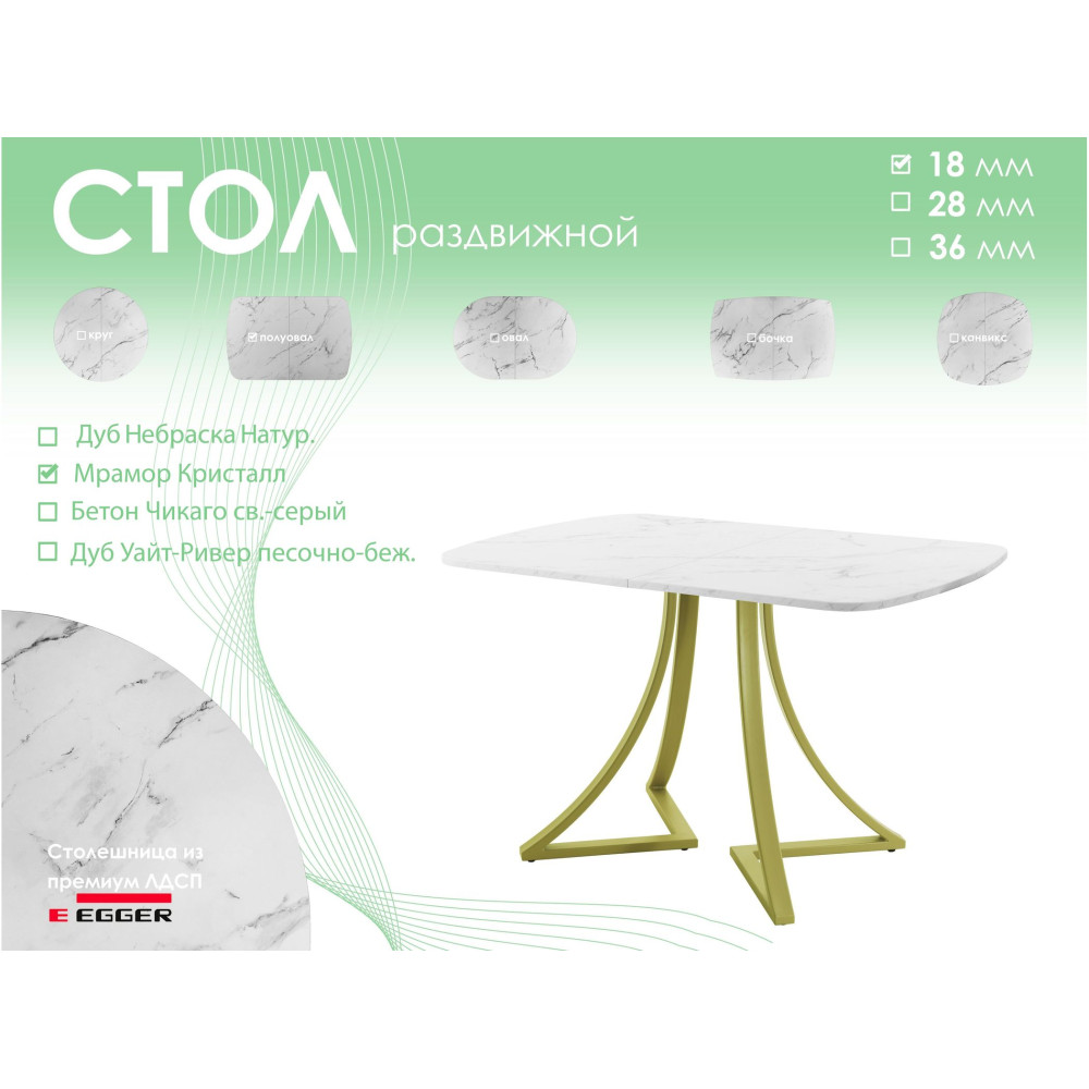 Обеденный стол AMC Elite (серии SLIM) / E24(1200) D2 (золото/Мрамор Кристалл) 0 719.55BYN 959.40BYN